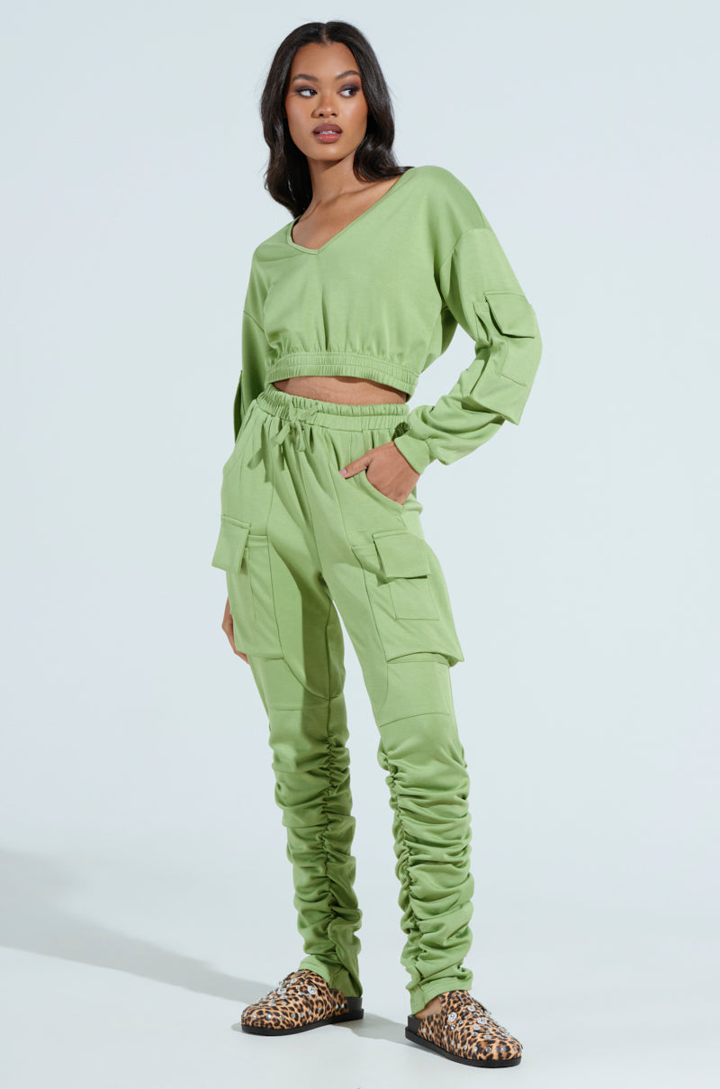Onlookers will be green with envy when they see how cool you look in The AWNIS Label Addicted To You Jogger! Crafted from a stretchy. irresistibly soft fabrication. these comfy cuties feature a high-rise. skinny-leg silhouette. an elasticized waistband with adjustable drawstrings. spacious side-slant pockets. and heavy ruching from knee-to-ankle. Complete with large. velcro-fastened cargo pockets on each thigh. Style with the Addicted To You Sweatshirt for a casual. coordinated look.