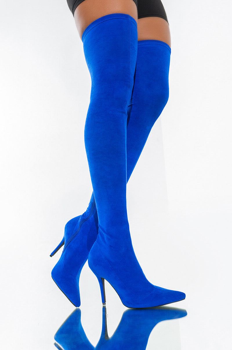Time to get up and get out — it's girl's night. The AZALEA WANG Your Friends Are Taking You Out Thigh High Sexy Heel Suede Boot makes a simple. seductive. fashion statement. A faux suede exterior encompasses the boot while a thin stiletto heel. pointed toe and over the knee. thigh high fit amp up the sexiness.