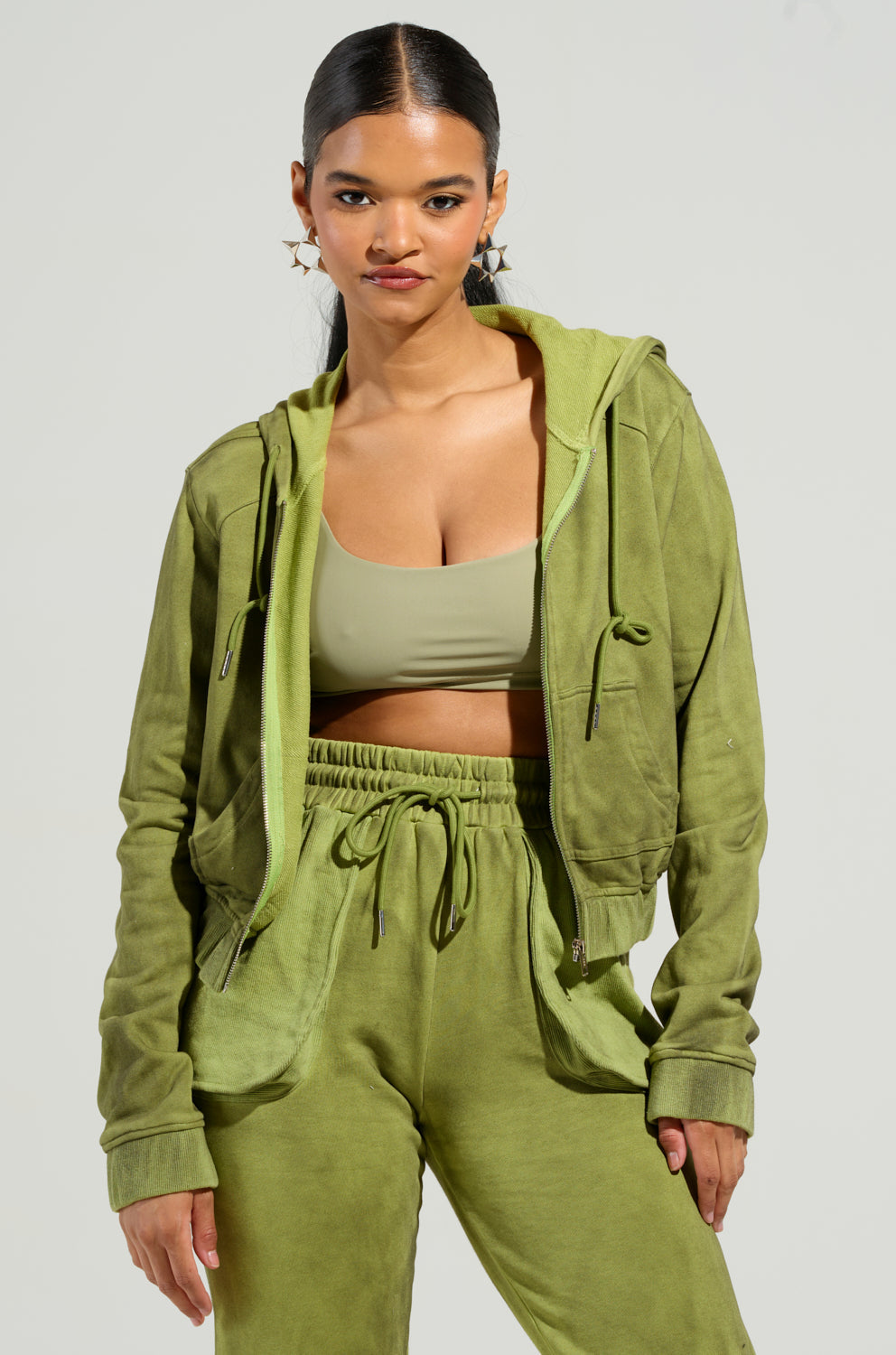 The AWNIS Label In My Element Hoodie is crafted from soft. semi-stretchy cotton and features a relaxed fit. a metallic zip front closure. two pouch pockets. an attached hood with adjustable drawstrings. a ribbed knit hemline. and long sleeves with coordinating ribbed knit cuffs. Pair it with the matching In My Element Jogger for a cute 'n casual look.